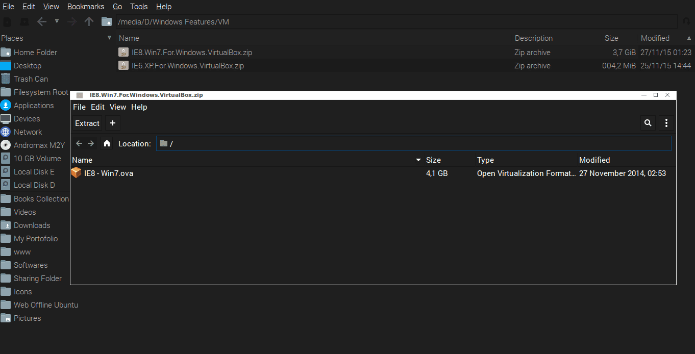 Saya harus sabar menunggu, mengingat besar Virtual OS yang harus didownload sebesar 3,7 GB. Setelah terdownload, saya mendapati isi dari berkas zip ialah berkas bernama IE - Win7.ova (Open Virtualization Format) sebesar 4,1 GB.
