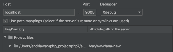 Untuk Host silahkan isi localhost dan port sama dengan konfigurasi awal 9005. Nah, karena kita menggunakan Laradock yang artinya kita meremote file PHP, kita perlu centang path mapping. Langkah ini yang menurut saya penting, karena saya waktu itu stuck di langkah ini 😂. Path mapping ini penting, agar xdebug bisa mengidentifikasi breakpoint dari file-file PHP kita. Saya sempat dibuat pusing, karena issue ini. Semua konfigurasi sudah berjalan, namun breakpoint tidak dapat dibaca xdebug. Sesuaikan saja path local dengan path pada container php-fpm kita. Kalau tidak yakin path remotenya, kita bisa masuk ke container php-fpm dengan menjalankan perintah docker-compose exec php-fpm bash. Biasanya path mapping file-file php berada pada folder var/www/