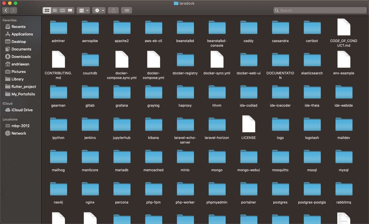 Pastikan anda sudah menyiapkan Laradock pada lokal komputer anda. Jika belum, coba ikuti langkah langkahnya disini. Laradock memakai command docker-compose untuk administrasi semua docker containernya. Langkah yang paling mudah ialah melakukan eksekusi command pad terminal docker-compose up -d mysql apache2 phpmyadmin