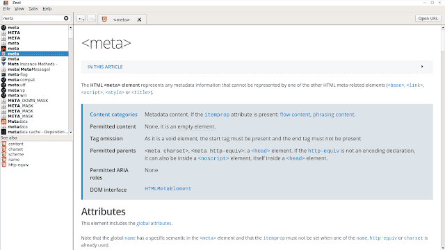 Dengan menggunakan Zeal, Waktu yang anda butuhkan untuk mencari informasi dokumentasi dari setiap pemrograman akan lebih efektif. Lebih baik dari pada harus membuka tiap dokumentasi dari tiap pemrograman yang ada. Misal saya ingin mencari sebuah tag dalam html. Saya hanya perlu mengetikan keyword misal meta